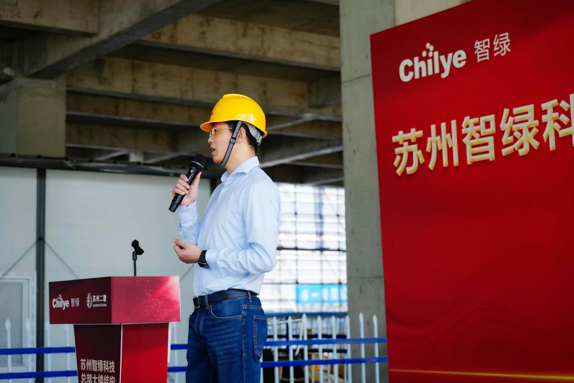 在主持人的邀請(qǐng)下以及現(xiàn)場熱烈的掌聲中,智綠科技董事長尹家彤先生隆重登臺(tái),為此次封頂大會(huì)致辭。